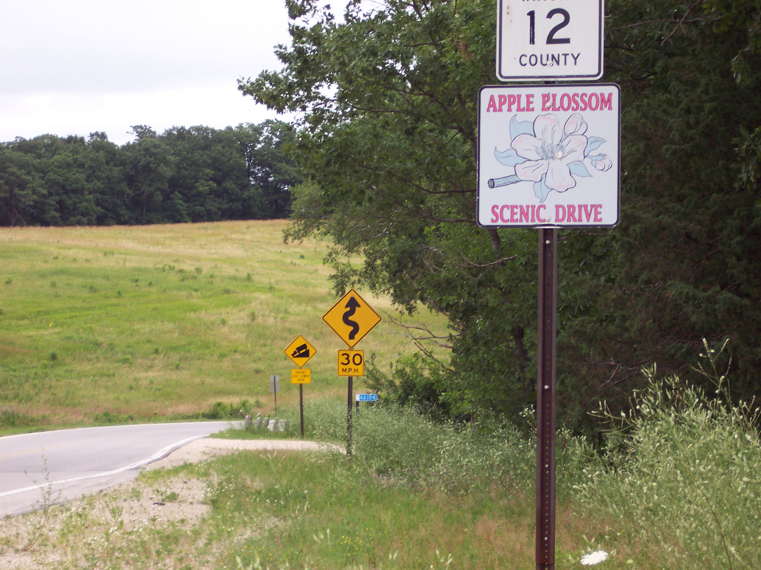 One of the more interesting rides is the Apple Blossom Scenie Byway, south of Winona. As the photo shows, there are curves ahead!